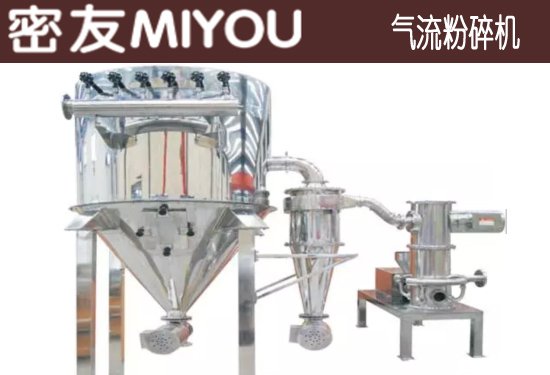 密友生產的氣流粉碎設備具有無污染、物理粉碎及分級精度高的特點,特別是能夠實現低溫粉碎,減少了熱敏性成分在粉碎過程中造成的損失;物料是在氣體膨脹狀態下粉碎,粉碎腔體溫度控制在常溫狀態,溫度不會升高;粉碎作用是粒子相互沖擊碰撞,高速粒子與壁面很少碰撞,可適用粉碎莫氏硬度九級以上物料;粉碎細度可在0.3μm~35μm任意調節,產量5~1500kg/h;系統可采用先進的觸摸屏,可編程PLC控制器,實現了全自動控制;廣泛應用于生物材料、食品、保健品、化工、制藥、油墨涂料、粉末冶金、電子電池、阻燃材料、陶瓷、高分子材料等干粉物料的超細粉碎。