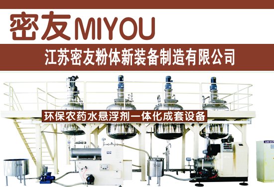 密友農藥水懸浮劑一體化成套環保設備整套系統主要由預分散釜、砂磨機、配方釜、消泡釜、半成品罐、成品罐、智能控制系統等組成。砂磨機是水懸浮劑生產系統中的關鍵設備,采用了優化設計的分散盤,最大程度的將能量轉移到研磨介質上,通過強力研磨迅速達到所需的細度;經多重優化的機械密封,具備了高可靠性和耐用性,杜絕由物料滲出造成傳動部分損壞、機封磨損帶來的潤滑油脂污染物料等問題,為連續生產提供基本保證;大面積的多層冷卻區域,能夠有效逸散磨腔中產生的熱量。無論是單次加工還是多次循環操作,均提供有效的冷卻,為客戶提供了整套解決方案,滿足環保、節能、清潔生產。