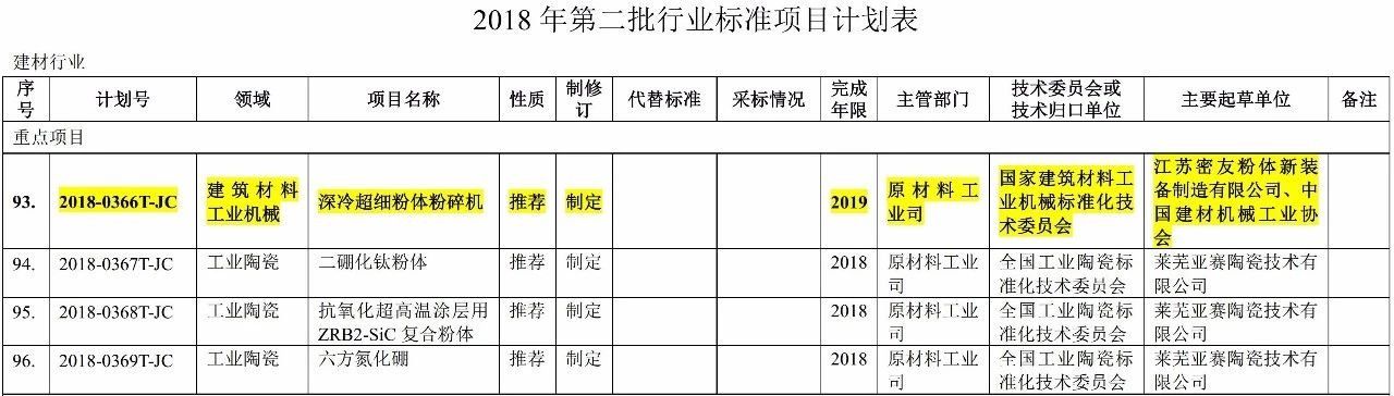 工信部印發《2018年第二批行業標準制修訂和外文版項目計劃》里,由江蘇密友粉體新裝備制造有限公司、中國建材機械工業協會起草的《深冷超細粉體粉碎機》被列為建材行業重點項目。
