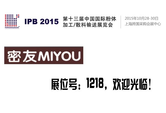 IPB 2015第十三屆中國國際粉體加工/散料輸送展覽會將于2015年10月28-30日在上??鐕少彆怪行呐e行。密友集團粉體裝備公司受邀參展,展位號:1218。屆時,有200多家國內外粉體領域相關企業同臺競技,展示最新技術及產品。